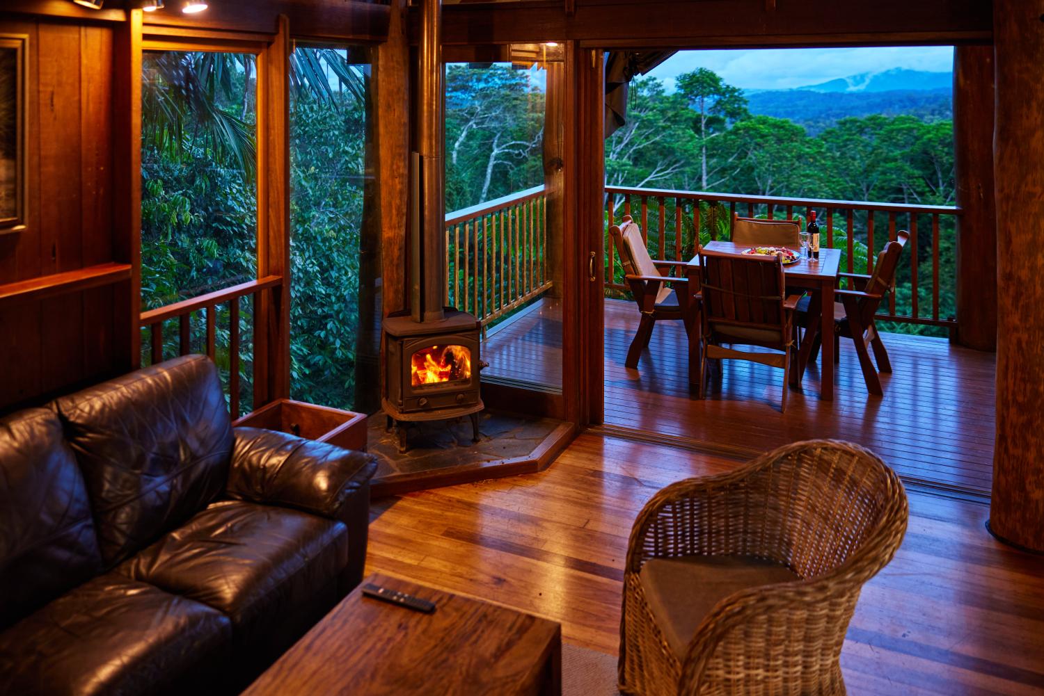 We use 240 volts single phase mains electricity to operate the lights and appliances to minimise energy consumption. Gas powers the instantaneous hot water services and cook tops, producing fewer emissions compared to traditional electric systems. For heating there is a slow combustion fireplace using local fallen timber with off-cuts from the local sawmills for kindling.